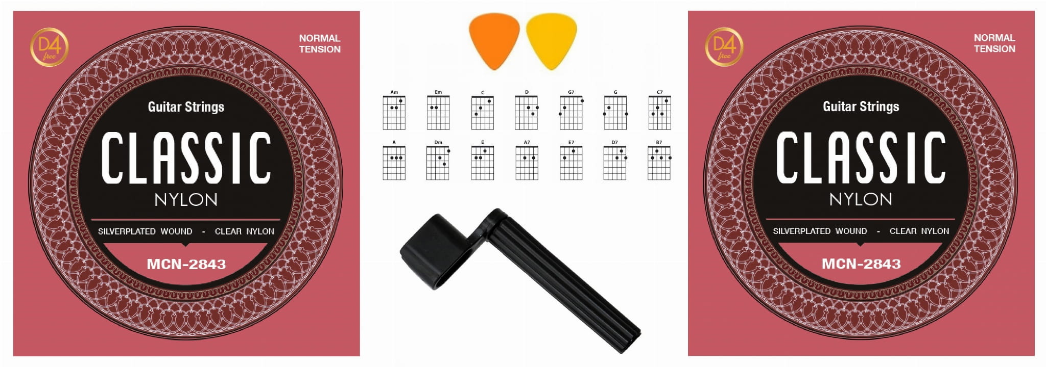 2X STRUNY DO GITARY KLASYCZNEJ Z ZAPASOWĄ STRUNĄ D4 + KORBKA + GRATISY