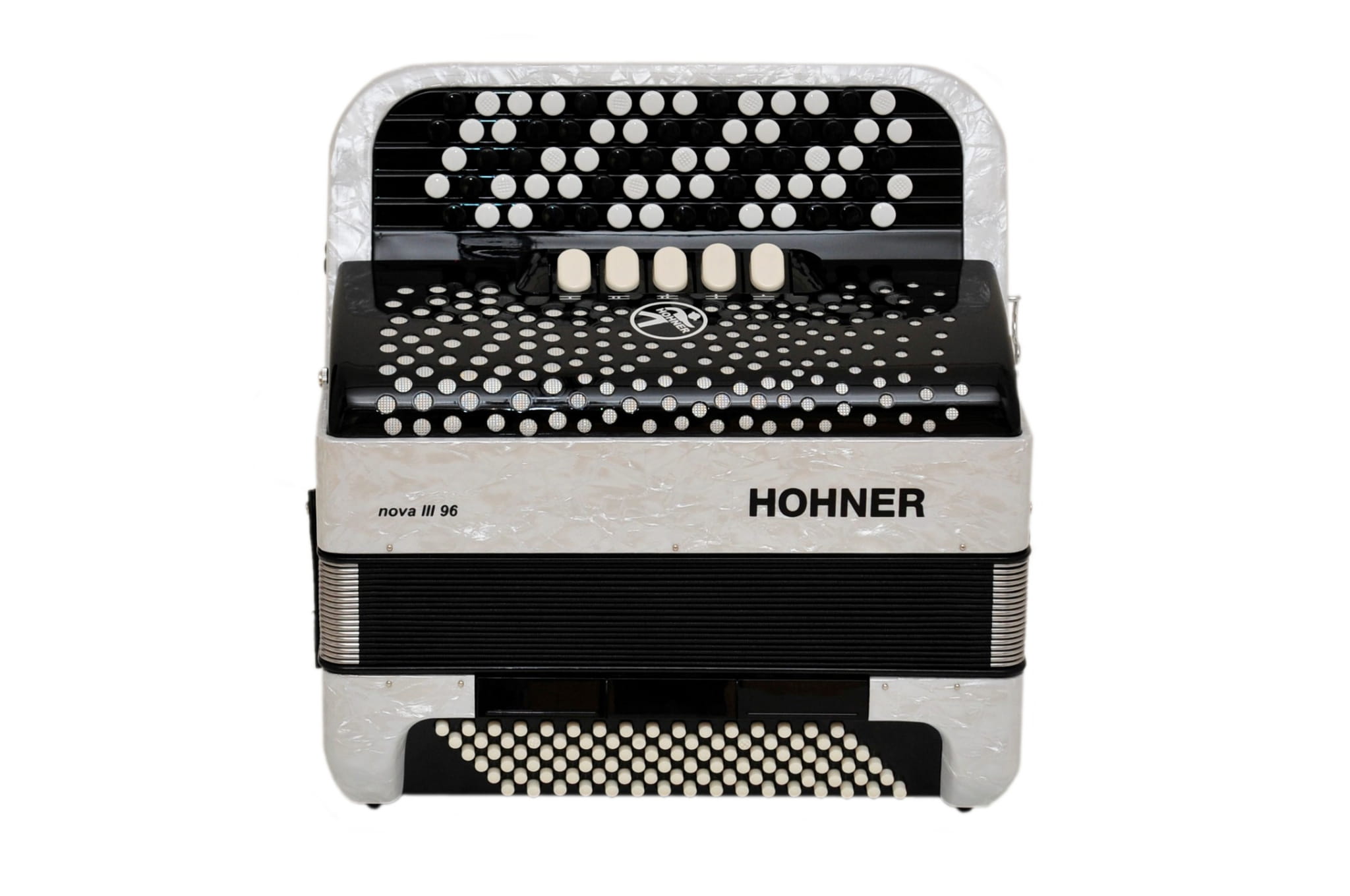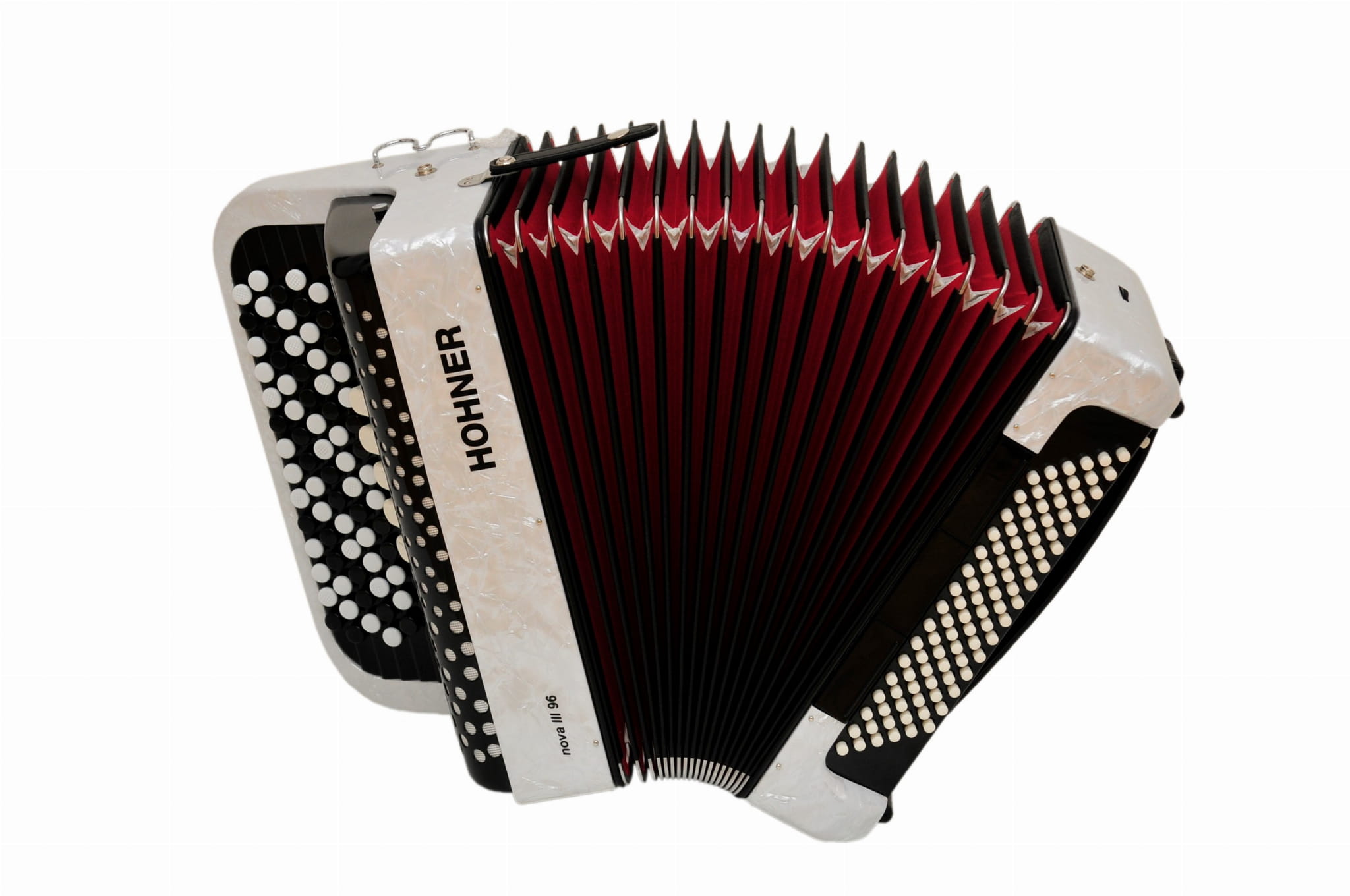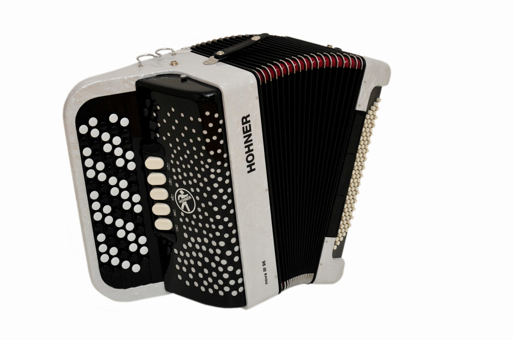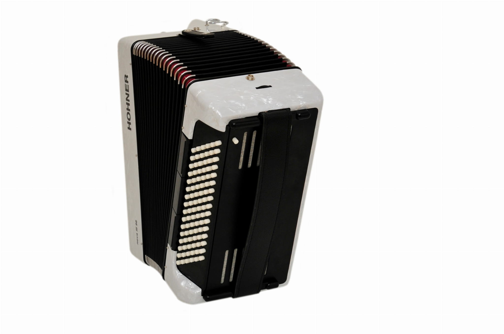 Akordeon guzikowy HOHNER NOVA III 96 WH BIAŁY + POKROWIEC + PASKI