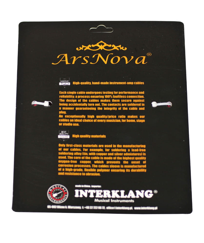 Profesjonalny przewód gitarowy renomowanej firmy Ars Nova z serii Solid Cables. Bardzo dobry stosunek jakości do ceny.