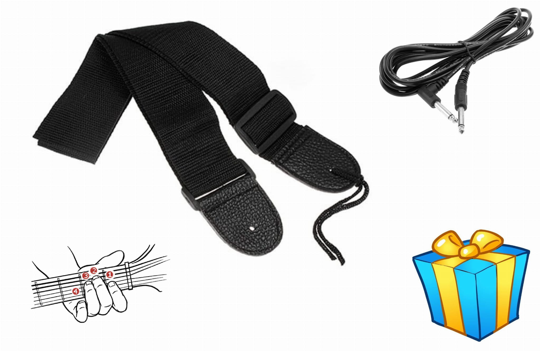 CZARNY PASEK DO GITARY + KABEL 3M + GRATISY --- PROMO !