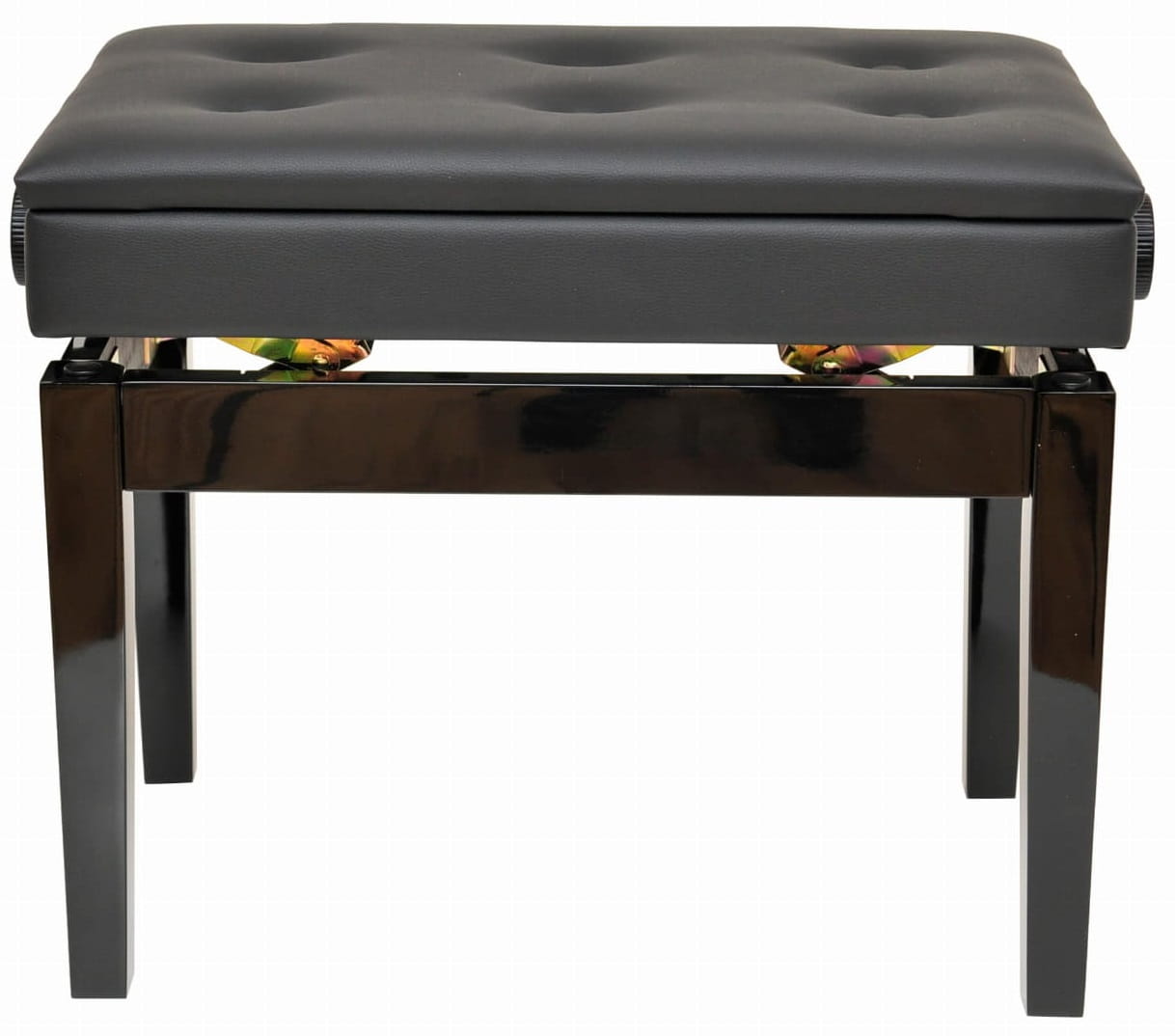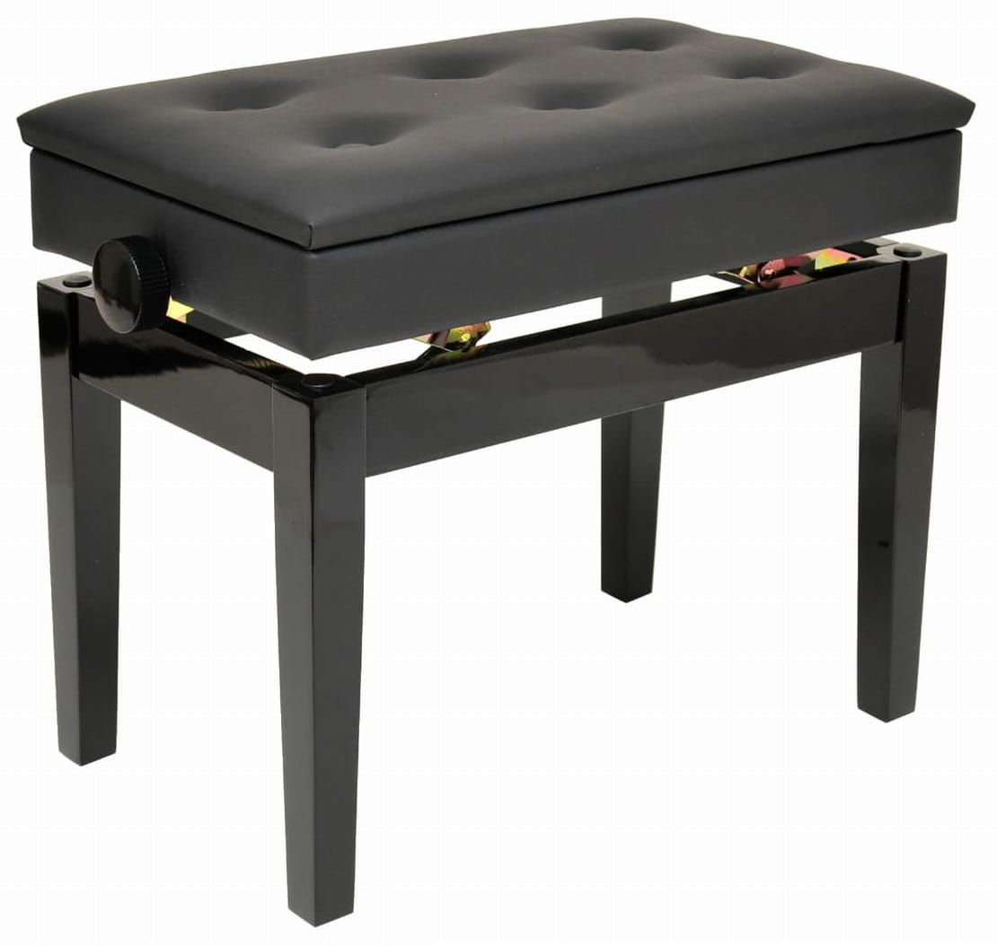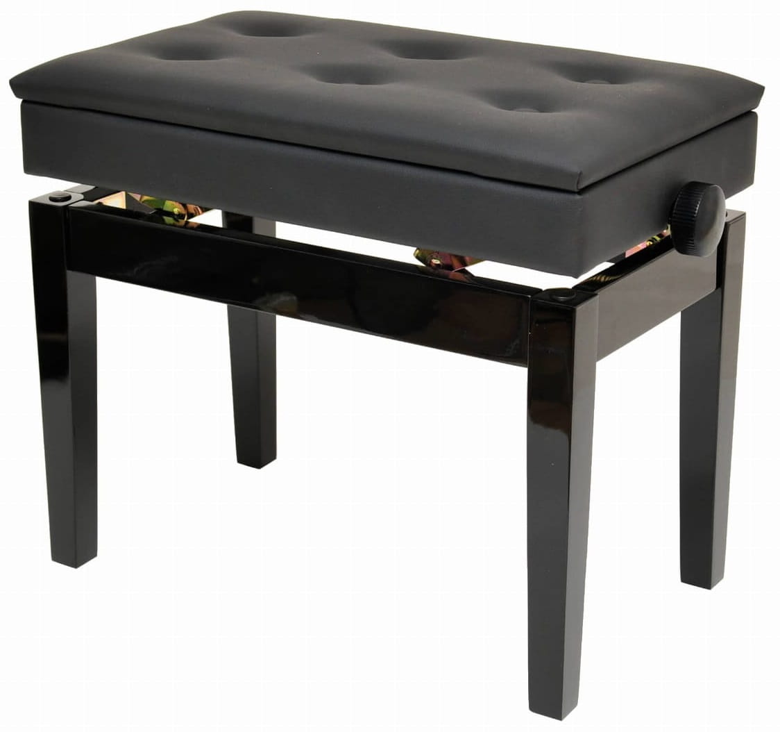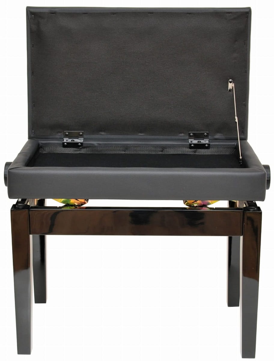 DĘBOWA ŁAWA DO PIANINA AMBRA PB-16G CZARNY POŁYSK SCHOWEK PIKOWANA EKO-SKÓR