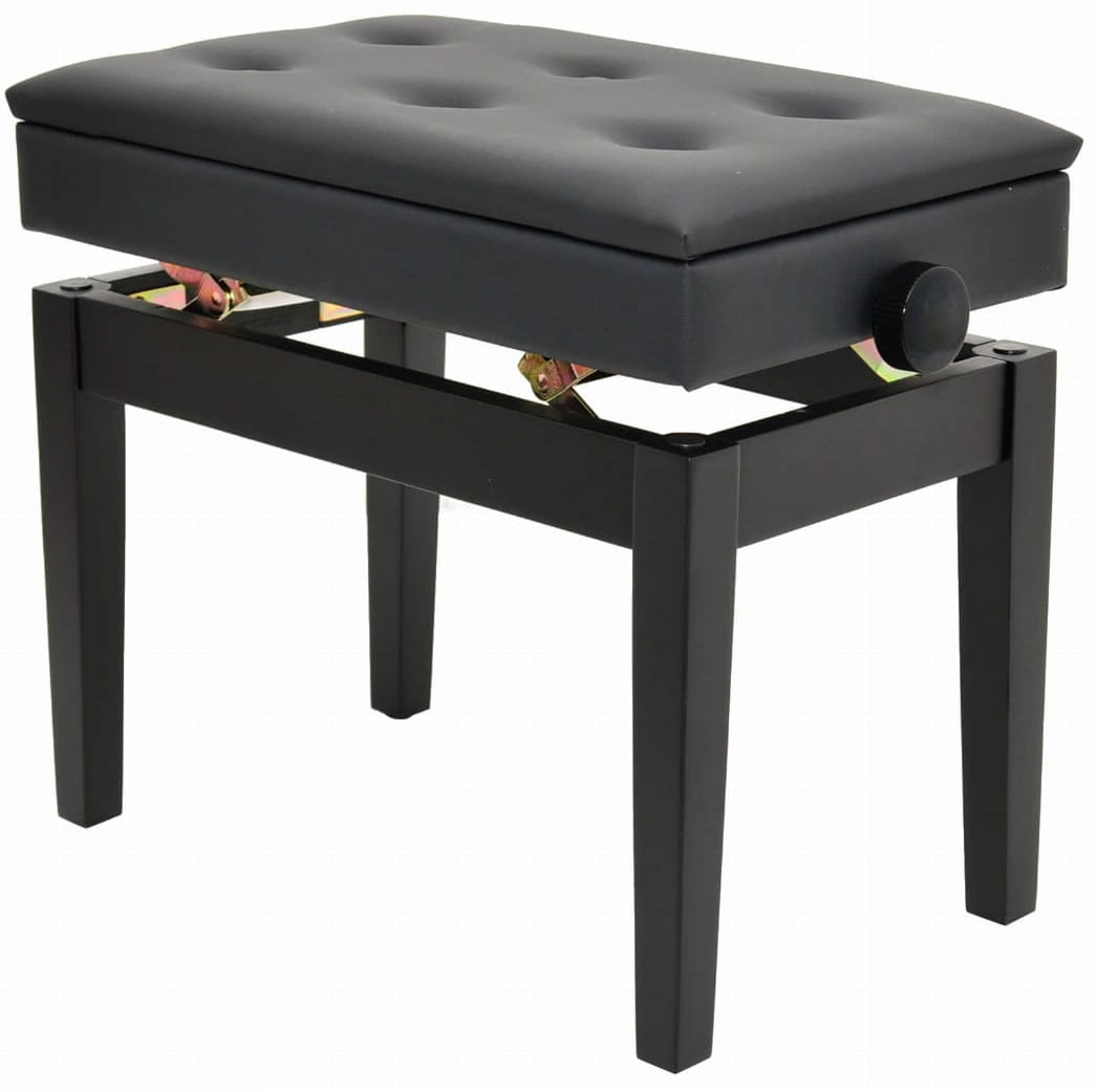 DĘBOWA ŁAWA DO PIANINA AMBRA PB-16M CZARNY MAT SCHOWEK PIKOWANA EKO-SKÓRY