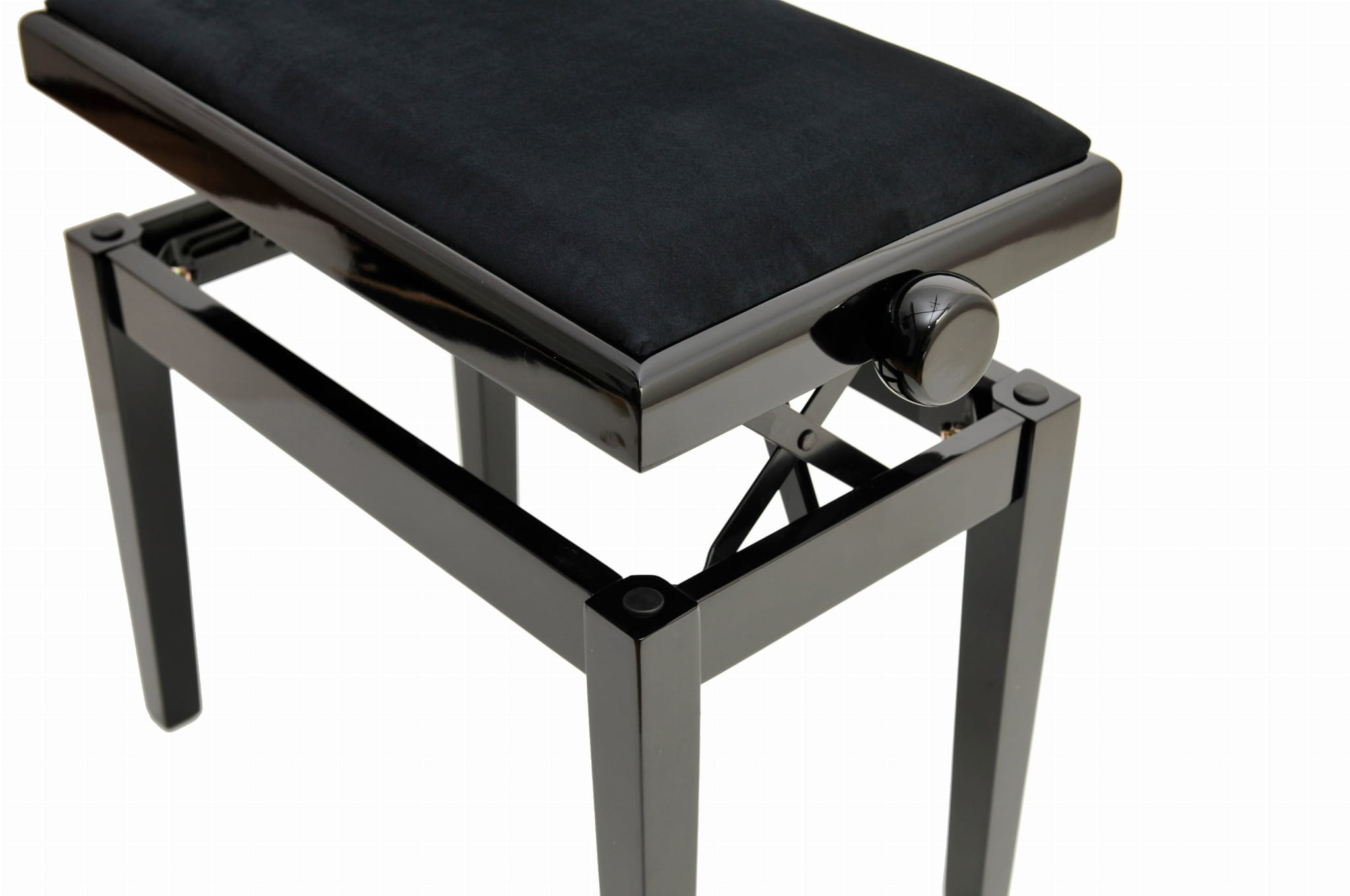 ✔ Powierzchnia ławy została pokryta lakierem odpornym na zarysowania, dzięki czemu nawet po intensywnym użytkowaniu mebel prezentuje się nienagannie. Miękkie, czarne welurowe siedzisko o wymiarach 57 x 33 cm zapewnia wysoki komfort nawet podczas długich sesji ćwiczeniowych czy koncertów.
