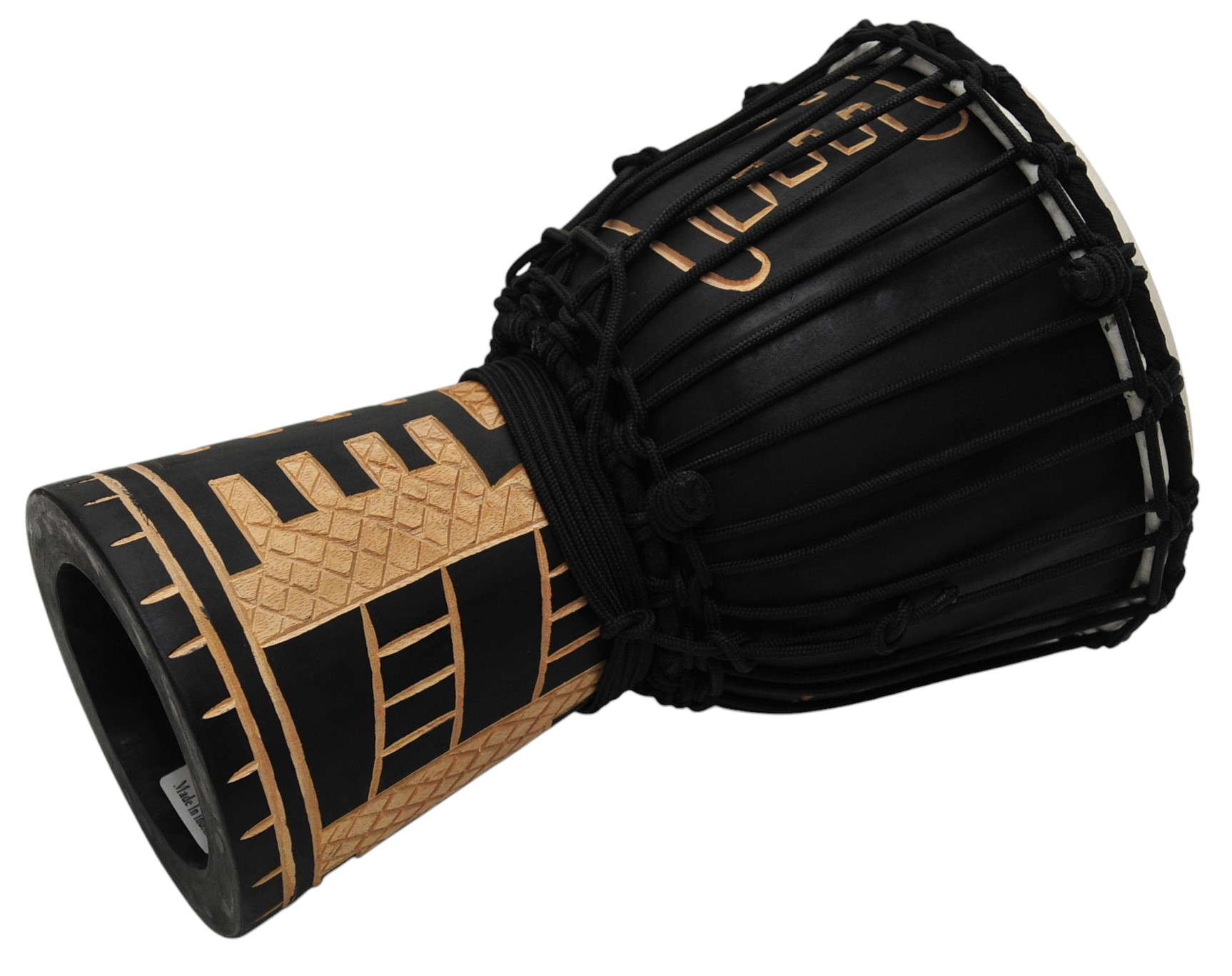 Korpus wykonany z jednego kawałka drewna mahoniowego, membrana z wysokiej jakości naturalnej skóry. Djembe Bardzo oryginalnie, barwnie zdobione z pięknymi etnicznymi rzeźbieniami. Wyposażone w wygodny uchwyt.