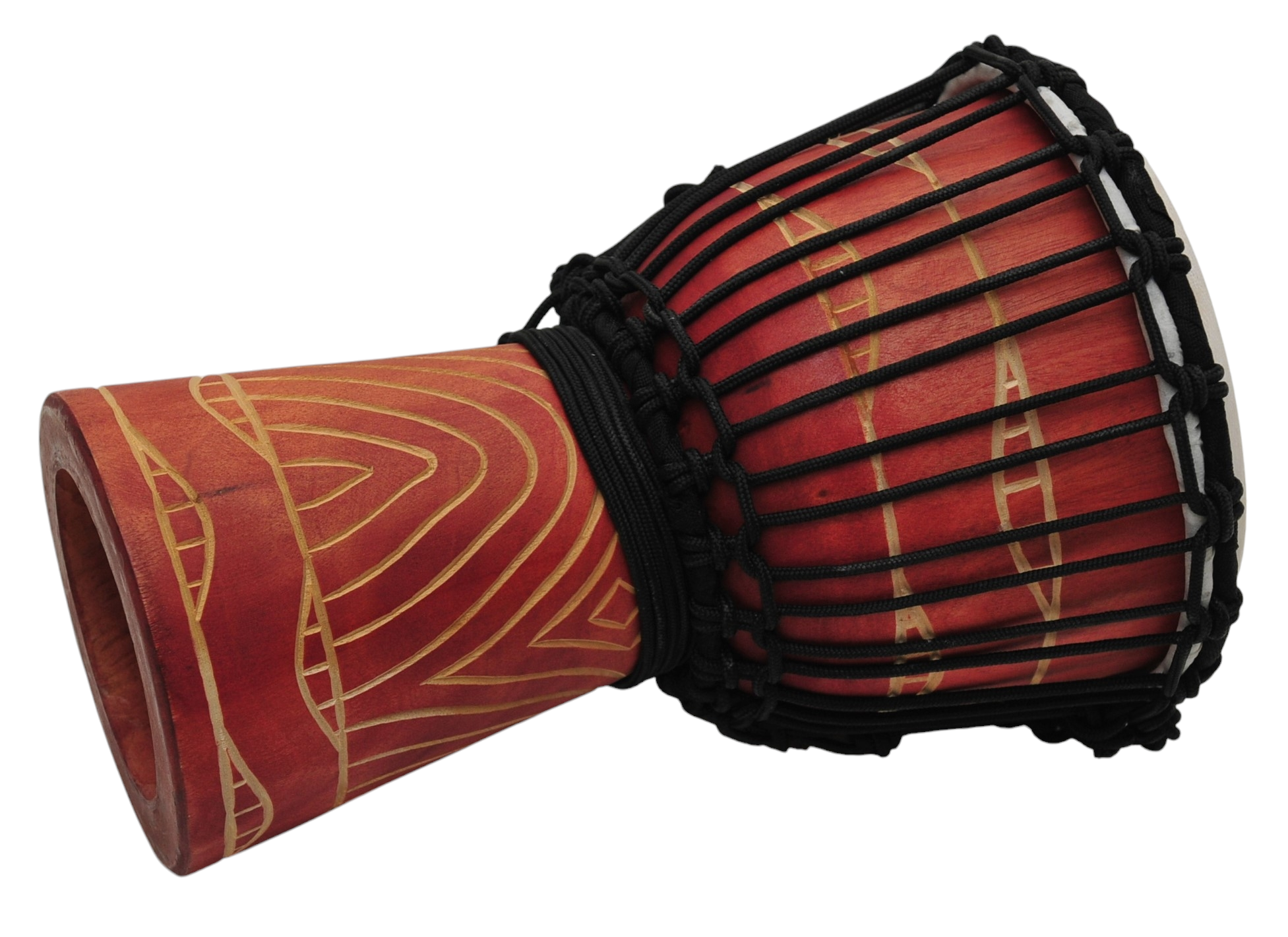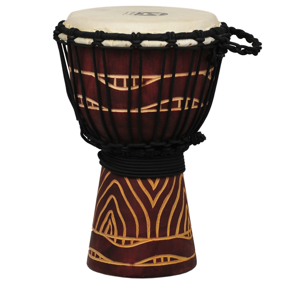 Korpus wykonany z jednego kawałka drewna mahoniowego, membrana z wysokiej jakości naturalnej skóry. Djembe Bardzo oryginalnie, barwnie zdobione z pięknymi etnicznymi rzeźbieniami. Wyposażone w wygodny uchwyt.