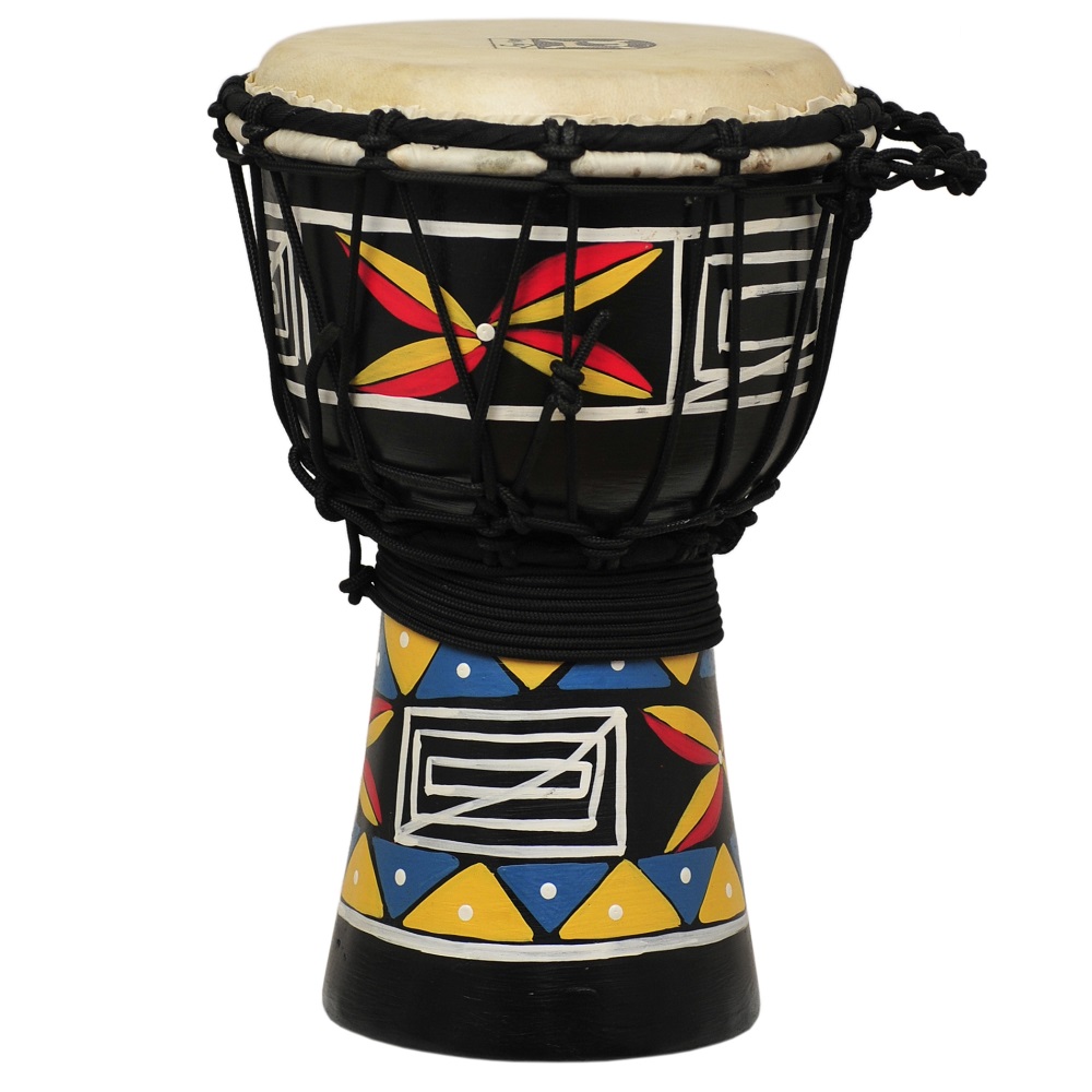 Djembe Bardzo oryginalnie, barwnie zdobione z pięknymi etnicznymi rzeźbieniami. Wyposażone w wygodny uchwyt.