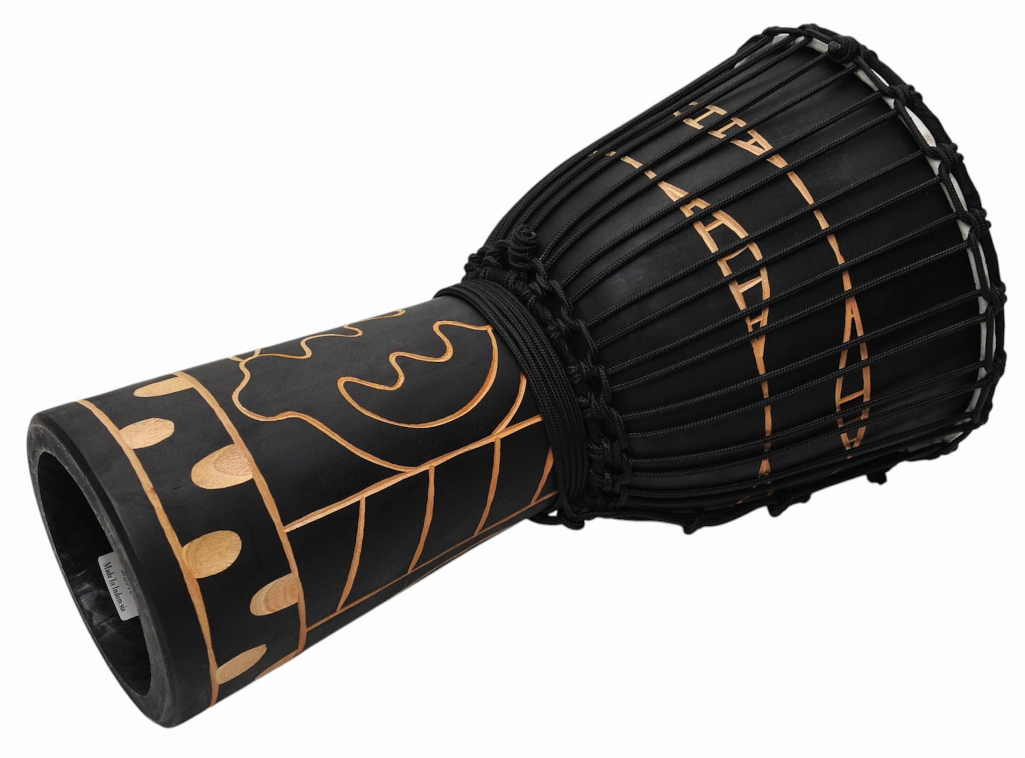 Korpus wykonany z jednego kawałka drewna mahoniowego. Membrana z wysokiej jakości naturalnej skóry naciągnięta jest za pomocą specjalnie splatanego mocnego sznura co zapewnia długotrwałe trzymanie stroju.