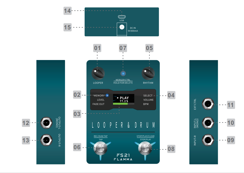 Flamma ma na celu pomóc nowym użytkownikom looperów, oferując rozbudowane funkcje metronomu i automatu perkusyjnego, obejmujące 10 opcji metronomu oraz 100 różnych rytmów perkusyjnych z 10 różnych stylów muzycznych. Aby ułatwić nagrywanie, FS21 posiada wyświetlacz LED Looper i Rhythm, który pozwala użytkownikom łatwo kontrolować poziom głośności, efekty loopera i pamięć, a także poziom głośności, liczbę uderzeń na minutę i style groove'u automatu perkusyjnego. Funkcje sterowania scalaniem umożliwiają synchronizację automatu perkusyjnego i loopera, co przekłada się na lepszą jakość nagrań i lepsze zarządzanie czasem.
