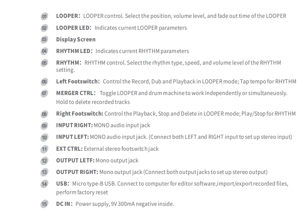 - Wysokiej jakości looper (44,1 kHz, 24 bity) i automat perkusyjny