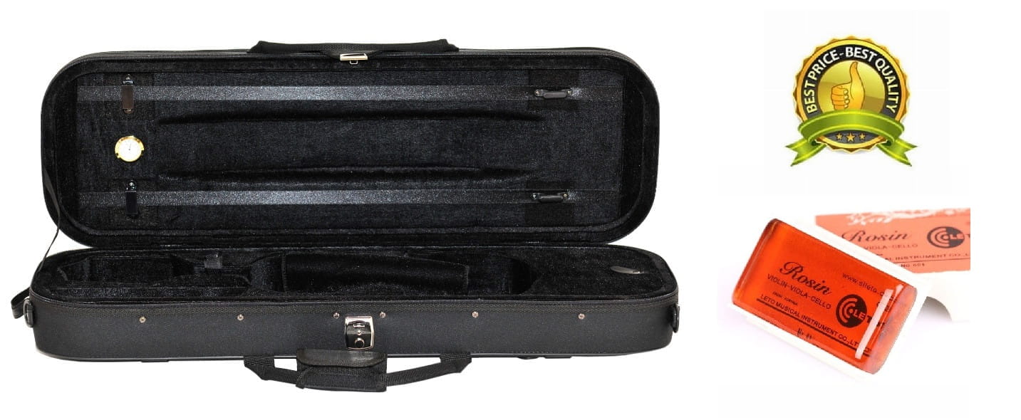 Znajdują się tam również dwa uchwyty na smyczki, zamykany praktyczny schowek na akcesoria oraz miękka tkanina do przykrywania skrzypiec.