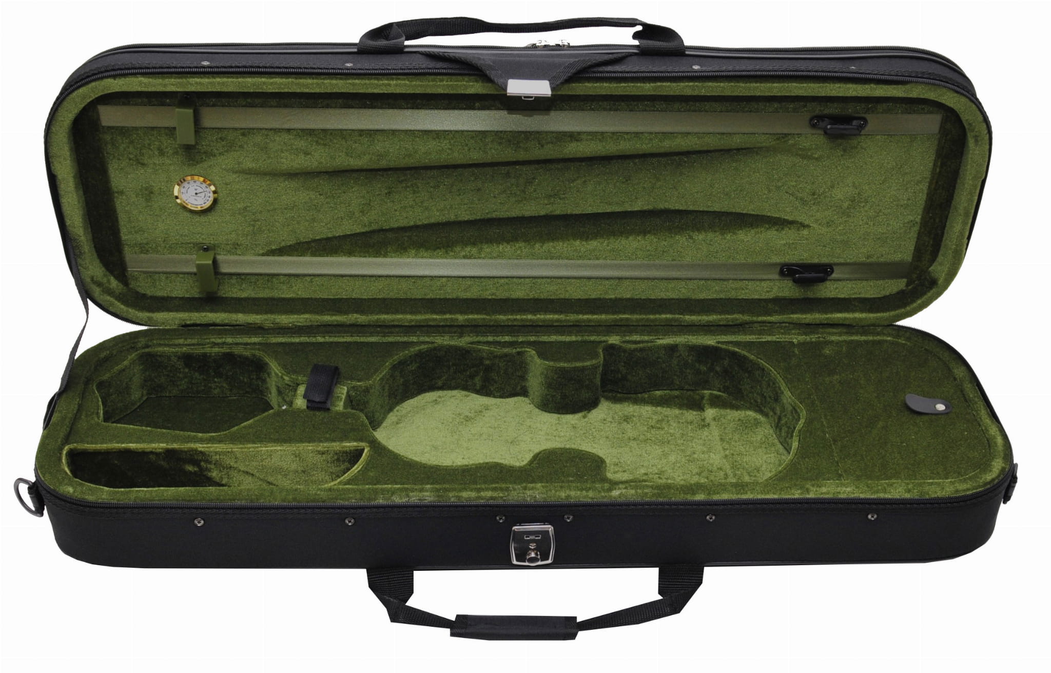Wnętrze futerału pokryte jest miękkim welurem doskonale chroniącym skrzypce przed uszkodzeniami mechanicznymi. Dopasowana kształtowa komora zabezpiecza instrument przed przesuwaniem się podczas transportu.