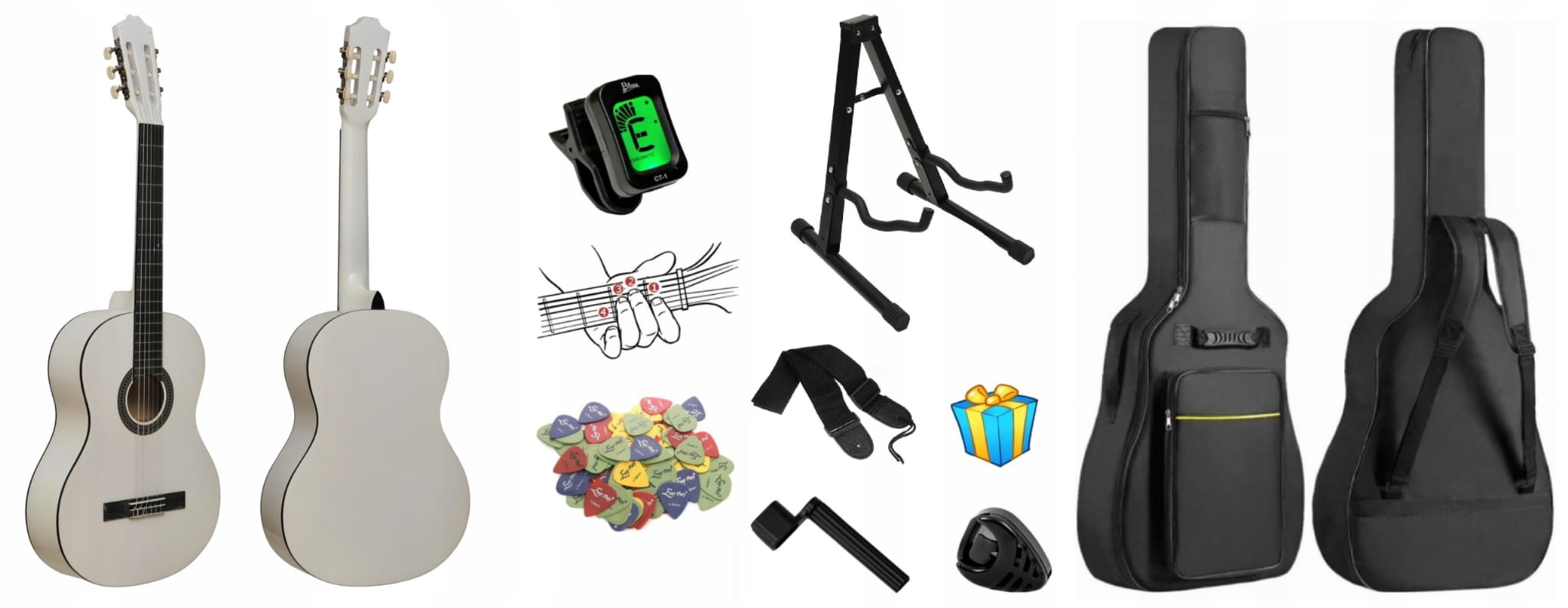 GITARA KLASYCZNA 4/4 WHITE GLOSS + AKCESORIA + GRATISY - PREMIUM SET