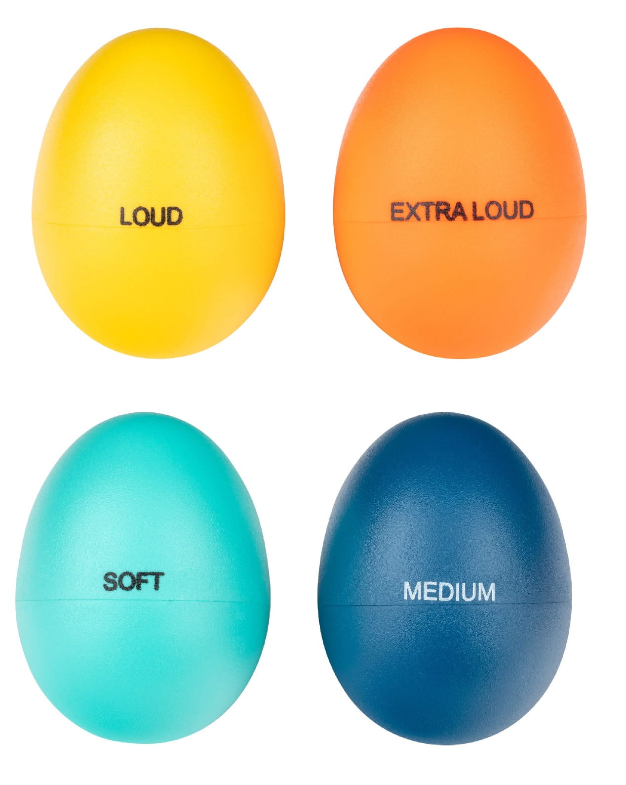 4 rodzaje shakerów w komplecie: Soft, Medium, Loud, Extra Loud.