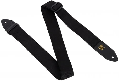 Wytrzymały pasek z polipropylenu odporny na blaknięcie i rozciąganie o szerokości 5cm zakończony czarnymi skórzanymi zaczepami ze złotym logo Ernie Ball. Regulacja długości w zakresie: 96cm - 172cm.