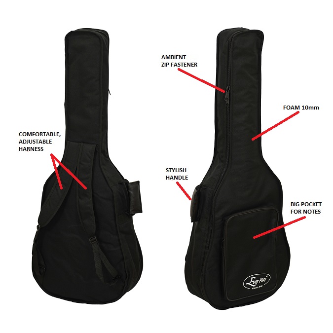 ➡️ Pokrowiec na gitarę klasyczną 3/4 Ever Play 810C 3/4 – wodoodporny, z pianką ochronną 10 mm, kieszenią i szelkami