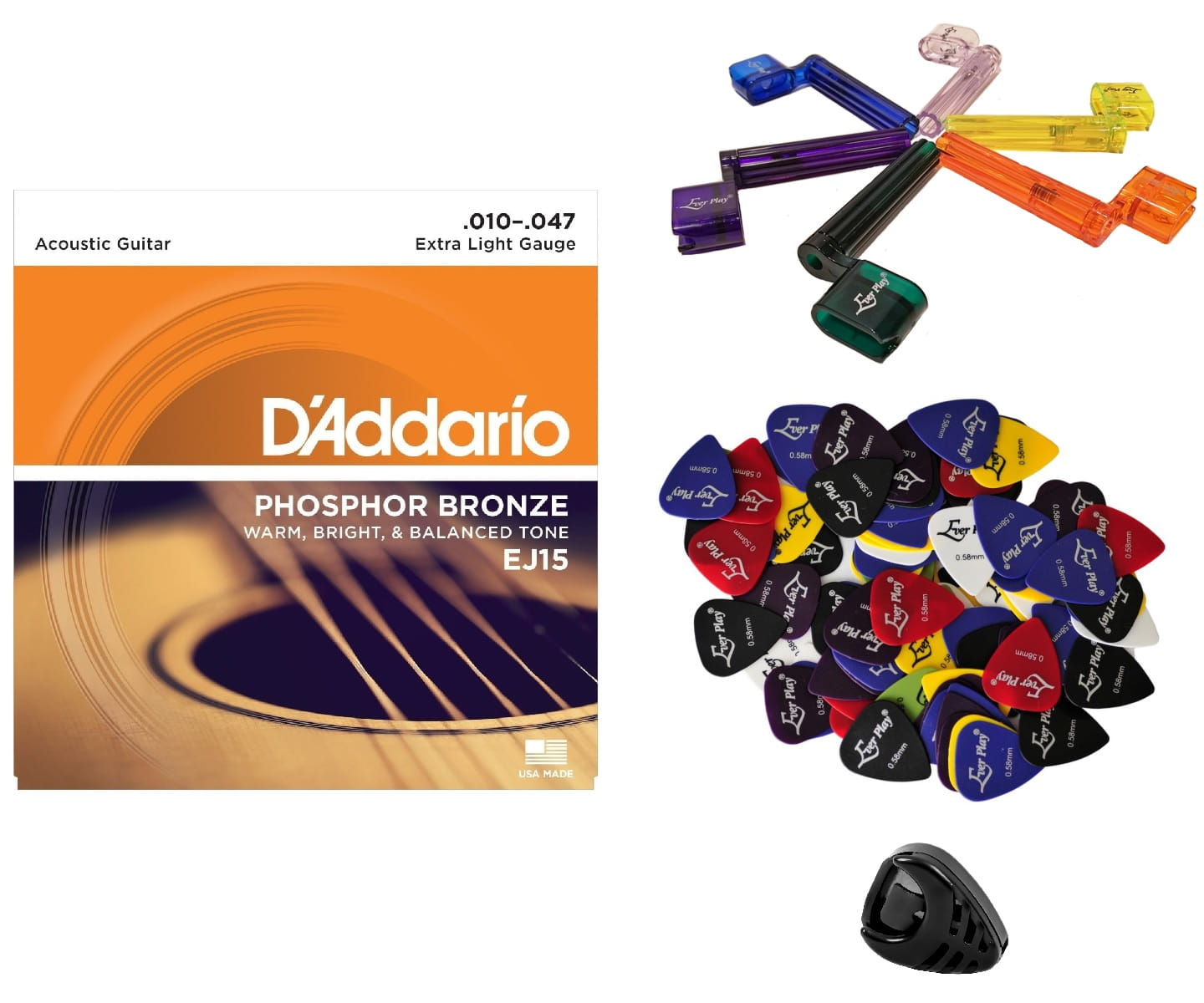 Struny D'Addario EJ15 wykonane są z brązu fosforowego, dzięki czemu posiadają niższe napięcie dla uzyskania brzmienia vintage. Ponadto struny z serii Phosphor Bronze dają ciepłe, jasne, zbalansowane i długotrwałe brzmienie akustyczne. Posiadają owijkę, która chroni je przed korozją tym samym przedłużając ich żywotność. Ponadto mają stalowy rdzeń o przekroju sześciokąta (heksagonalnym).