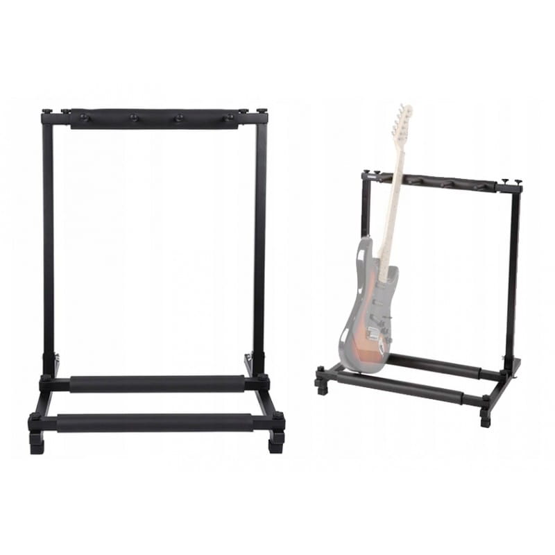 Wygodny i mocny stojak na 3 gitary, wykonany z metalu w kolorze czarnym. Posiada stabilną konstrukcję a dodatkowo posiada ramiona pokryte pianką co chroni gitarę przed zarysowaniem.