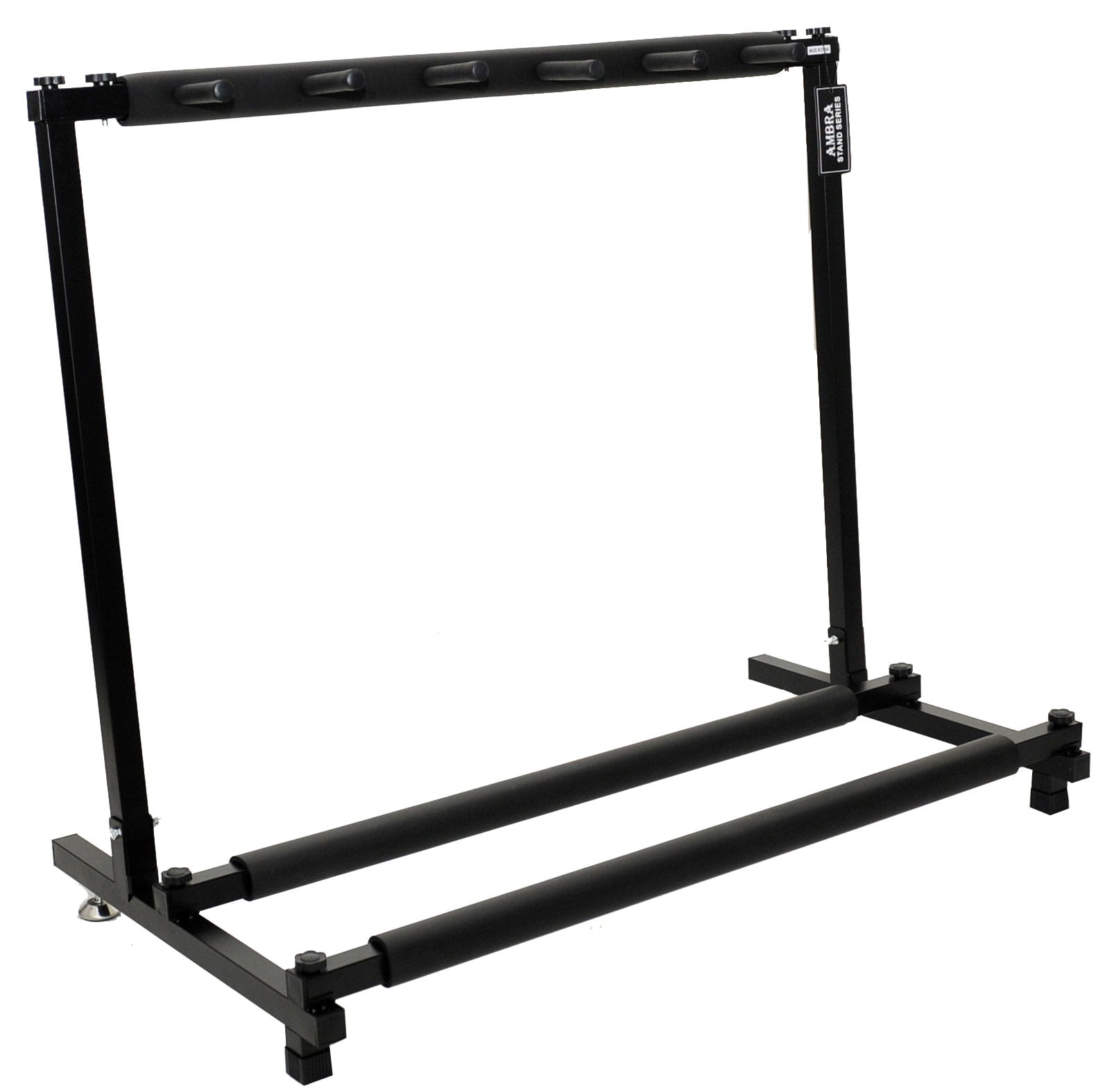 Wygodny i mocny stojak na 5 gitar, wykonany z metalu w kolorze czarnym. Posiada stabilną konstrukcję a dodatkowo posiada ramiona pokryte pianką co chroni gitarę przed zarysowaniem.