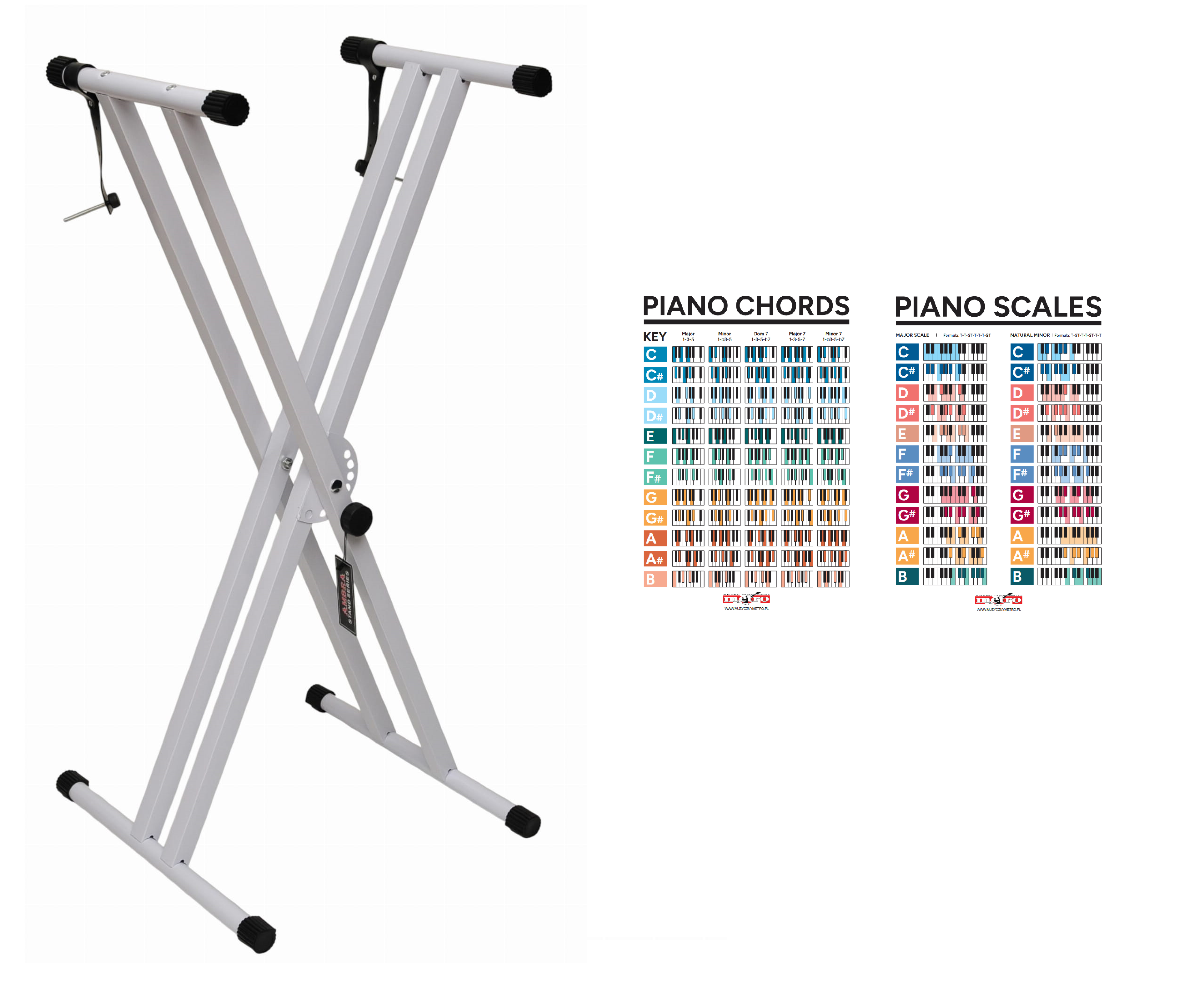 STATYW / STOJAK POD KEYBOARD PIANINO ORGANY PODWÓJNY - AMBRA X4 WH + GRATIS