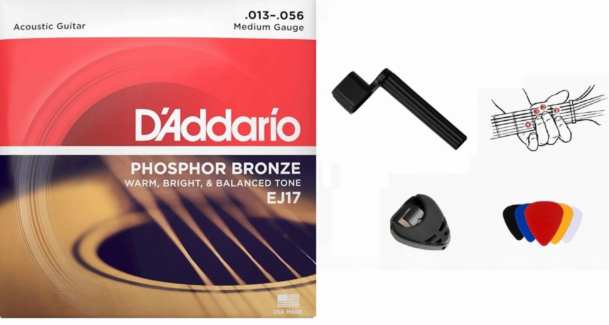 STRUNY DO GITARY AKUSTYCZNEJ D'ADDARIO EJ17 013-056 + PICKHOLDER + KOSTKI +