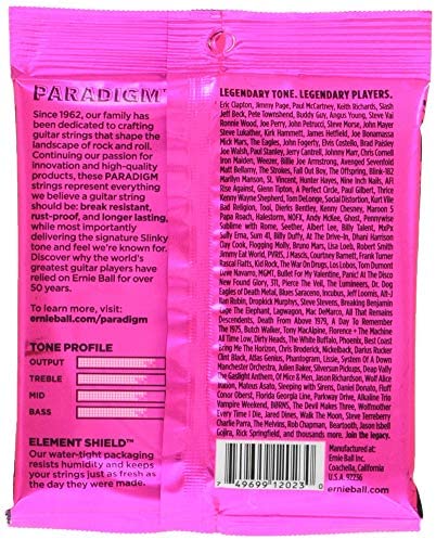 - Świetne struny gitarowe marki Ernie Ball z nowoczesnej serii Paradigm. Rewolucja technologiczna zastosowana przez producenta zapewniła im ponadprzeciętną odporność na wszelkie pęknięcia. Wszystko dzięki opatentowanej przez producenta nanotechnologi Everlast połączonej z procesem plazmowym. Takie rozwiązanie gwarantuje niezawodną ochronę przed wilgocią i innymi negatywnymi substancjami wraz z zabezpieczeniem strun przed korozją. Nie zapomniano przy tym wszystkim o legendarnym, pożądanym brzmieniu Slinky.