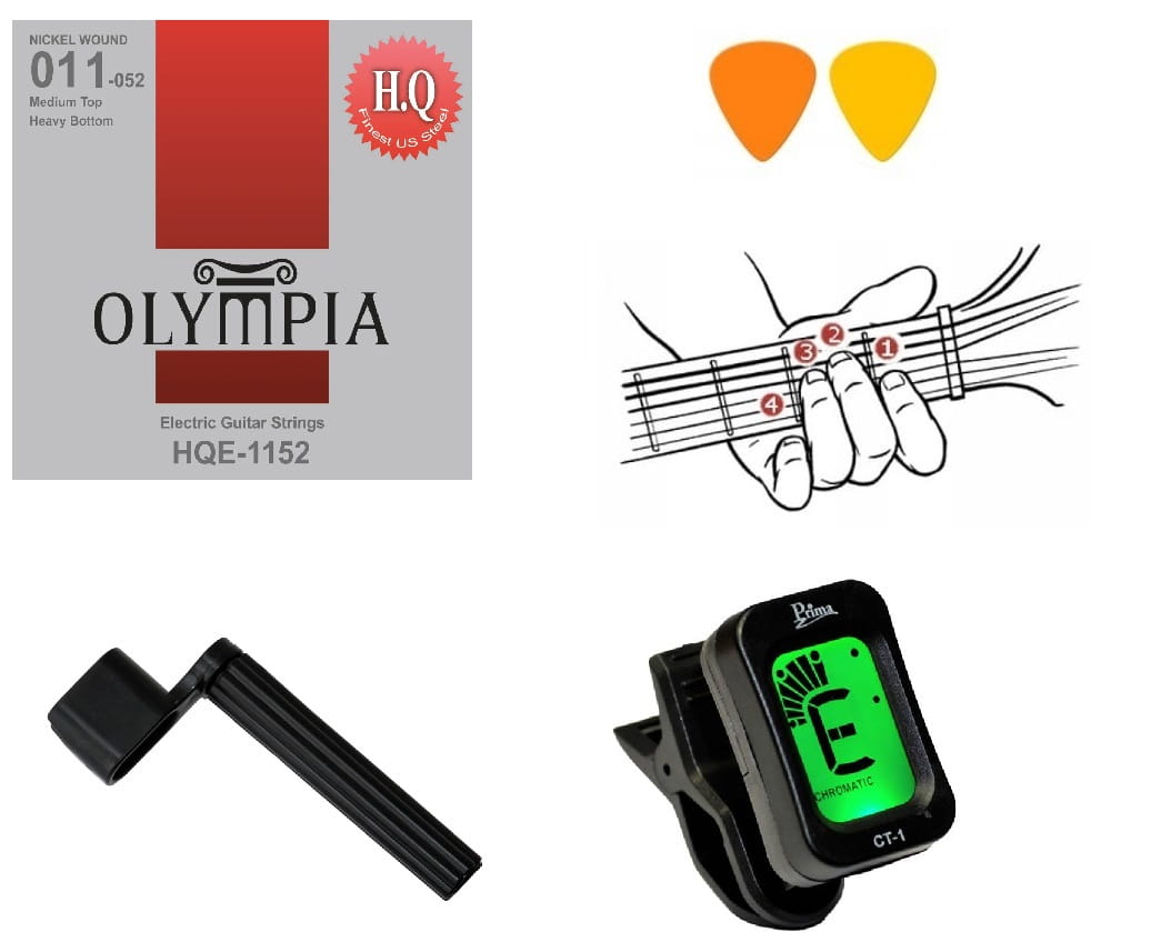 STRUNY DO GITARY ELEKTRYCZNEJ OLYMPIA HQE-1152 + TUNER + KORBKA + KATALOG + KOSTKI