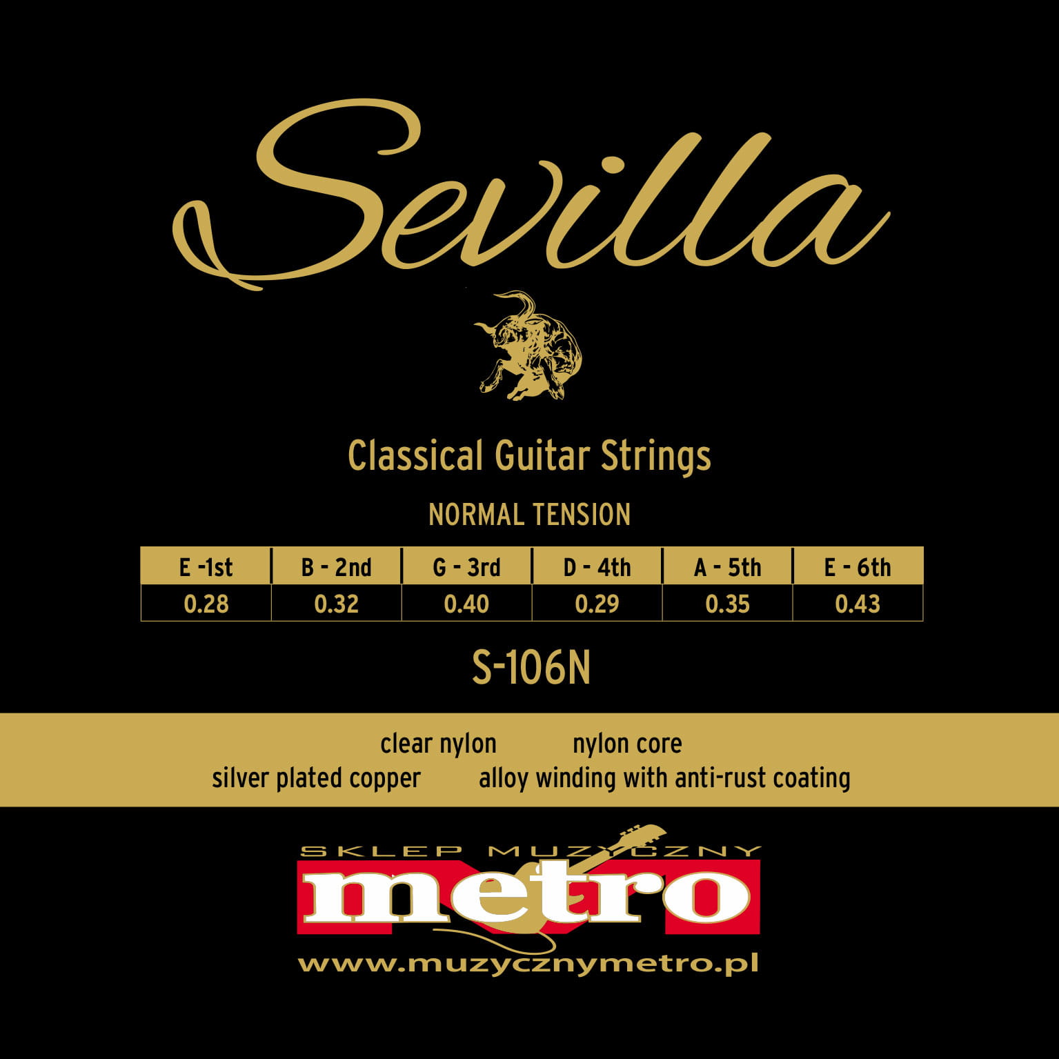 Wybór odpowiednich strun do gitary klasycznej jest sprawą bardzo ważną, ponieważ im lepsze struny tym lepsza jakość dźwięku, a należy pamiętać, że każdy model strun jest inny. Oczywiście nie trzeba kupować najdroższych strun aby cieszyć się pięknym brzmieniem. Przykładem niedrogich strun, które potrafią zachwycić są struny Sevilla S-106N Normal Tension, które brzmią bardzo czysto i naturalnie oraz nie sprawiają problemów z dociskaniem, przez co są także dobrym wyborem dla początkujących gitarzystów. Dodatkową zaletą tych strun jest także zapasowa struna D4.