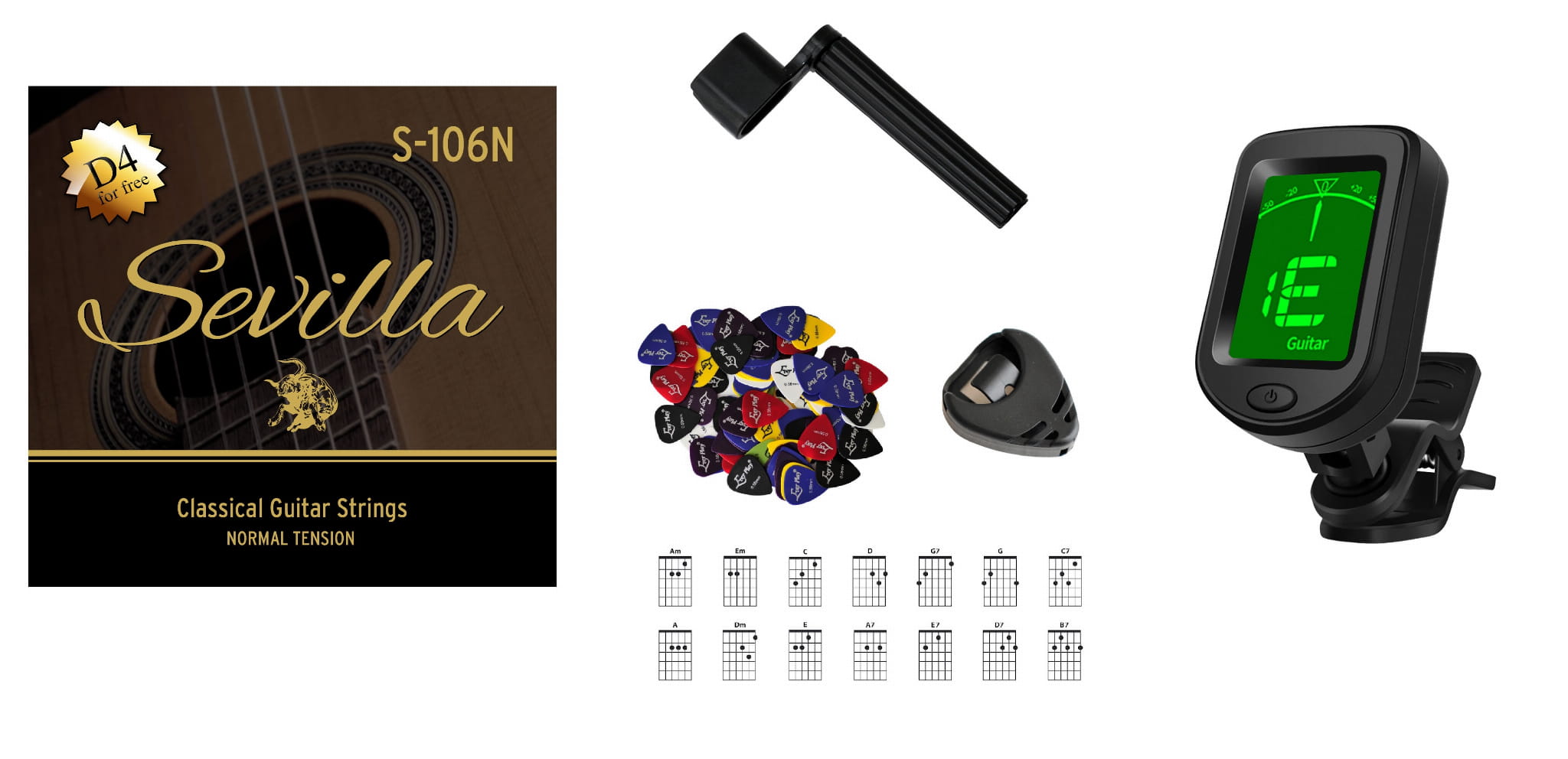 STRUNY DO GITARY KLASYCZNEJ SEVILLA + STROIK + AKCESORIA