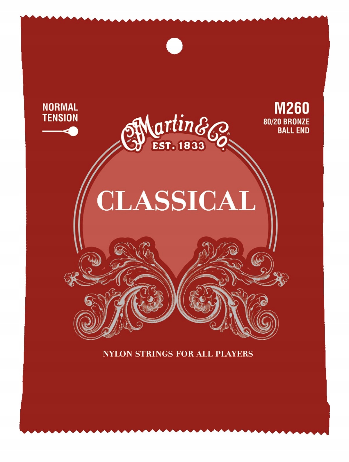 Martin M260 to dobrej jakości struny do gitary klasycznej. Odpowiednia twardość daje sprężysty, mocny dźwięk, lecz nie wymaga jeszcze bardzo silnego dociskania. Charakterystyczną cechą modelu M260 jest wyrównane brzmienie. Są to znakomite struny do codziennych ćwiczeń - przystępne cenowo, markowe i wykonane na wysokim poziomie. Struny zakończone kulką co sprawia, że nie wymagają wiązania na mostku.
